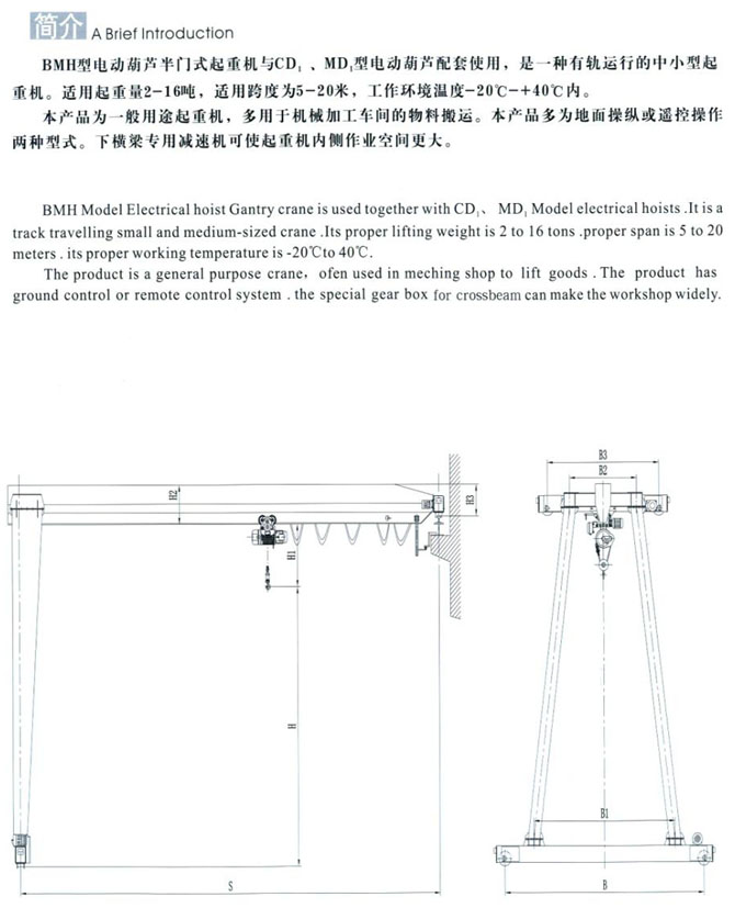 MHB型2-10t電動葫蘆半門式起重機(jī)